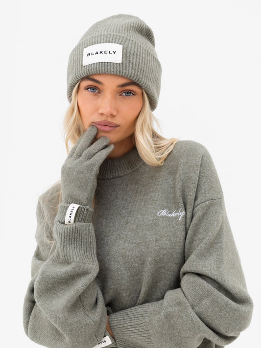 Label Knit Beanie - Safari Green